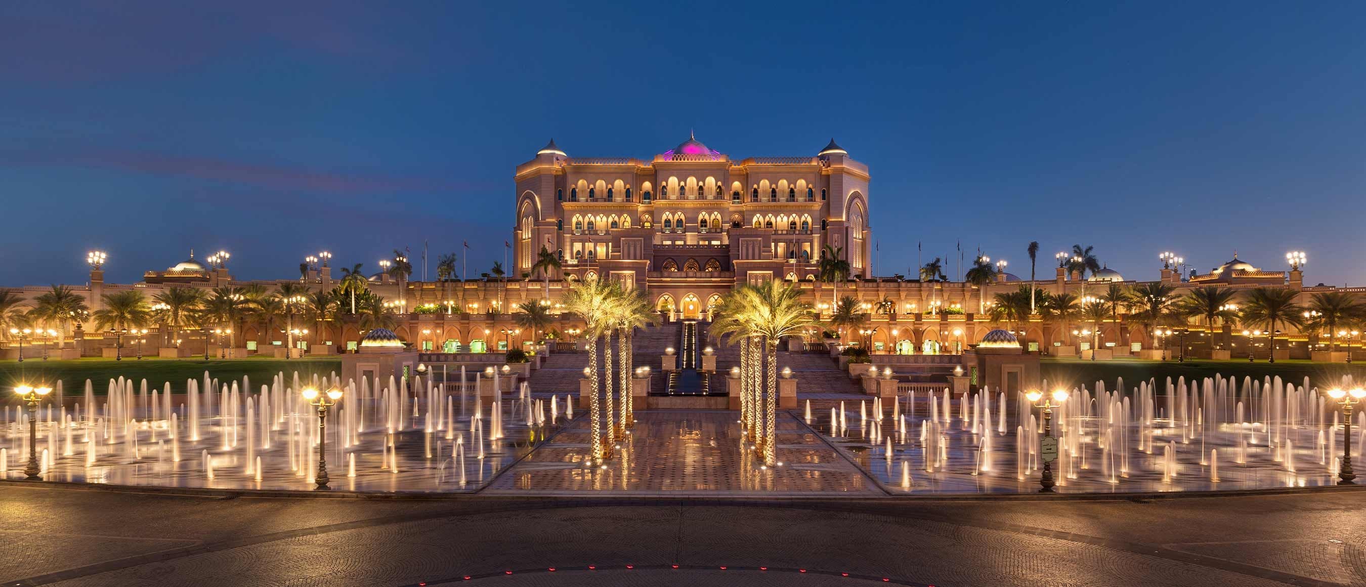 - The exotic Emirates Palace presents a dazzling sight with golden exteriors, opulent interiors and a lush landscaped garden.