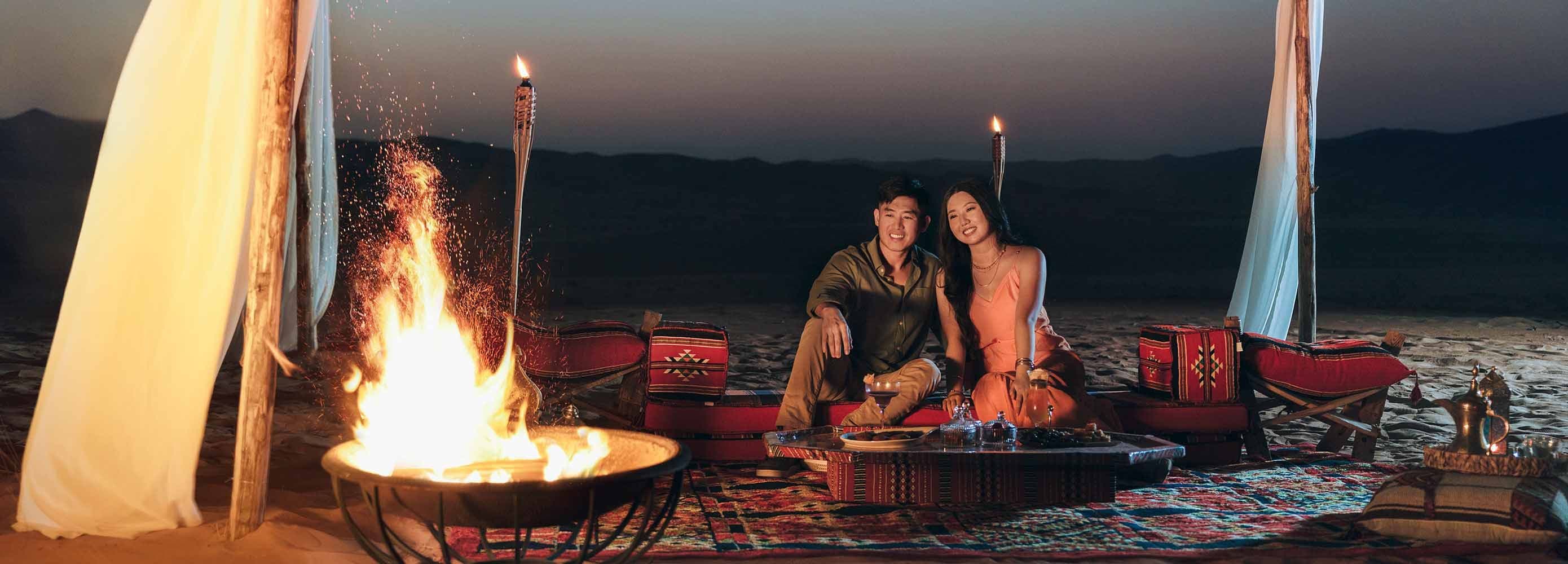 Be transported to the famed red sands of the Arabian desert with Masarra. Enjoy an authentic evening desert safari, living, feasting, dressing and dining the way the locals do. Start with an exhilarating drive up and down tall dunes in a 4x4 and end with a sumptuous barbecue desert dinner in Abu Dhabi, under inky-black starlit skies. Your day will be filled with real local experiences: riding a camel, getting up close with a majestic falcon, donning the local dress and sampling the famed Arab hospitality at a desert camp.